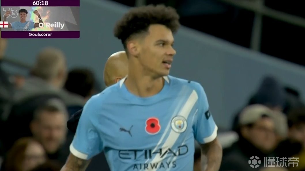 自9月以来,奥赖利是除哈兰德之外首位在英超进球的曼城球员